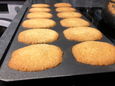 They turned out ok and taste nice. They do not have the hump that normally forms on madeleines, except two of them. I perhaps need to whisk the egg whites a bit more, but right now I am not bothered as they taste pretty good.