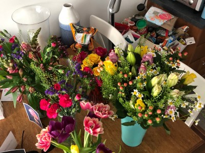 Our flat is full of flowers, its crazy!! Our lovely families sent us lots of flowers yesterday as it should have been our wedding day. I even ran out of vases so am having to use a jug for some of them. So funny. There is such a lovely smell in the lounge.