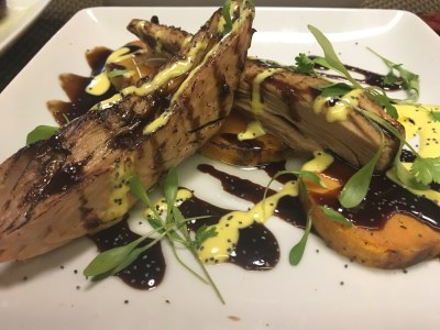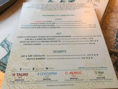One of the places that is highly popular with tourists is the Time Out Market. Now I know this is a tourist hot spot but its a great source of food and wine. Most people in Lisbon will tell you its too expensive and full of tourists. Yes compared to other places in Lisbon it is expensive but by London prices its pretty cheap. Our most notable visit was our first day ever in Lisbon, and our first meal. It was 2 pm and not a seat was free. Out of the corner of my eye I spotted a small set up just off to the side of the main area and two people were just leaving. This was the delicious Surf n Turf by Kiko Martins. We sat around a bar that looked onto the small but super efficient kitchen. All the food was being freshly made, one chef was cleaning and prepping a full octopus in front of us. From the small menu we picked 3 plates to try. The food was fresh, smart and oh so very delicious.